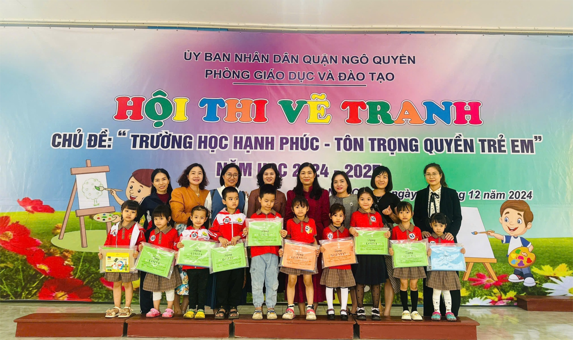 Trong cuộc thi vẽ tranh cấp quận với Chủ đề “Trường học hạnh phúc - tôn trọng quyền trẻ em”. Trường mầm non Đồng Tâm có 10 cháu tham gia dự thi và đạt các giải thưởng như sau: