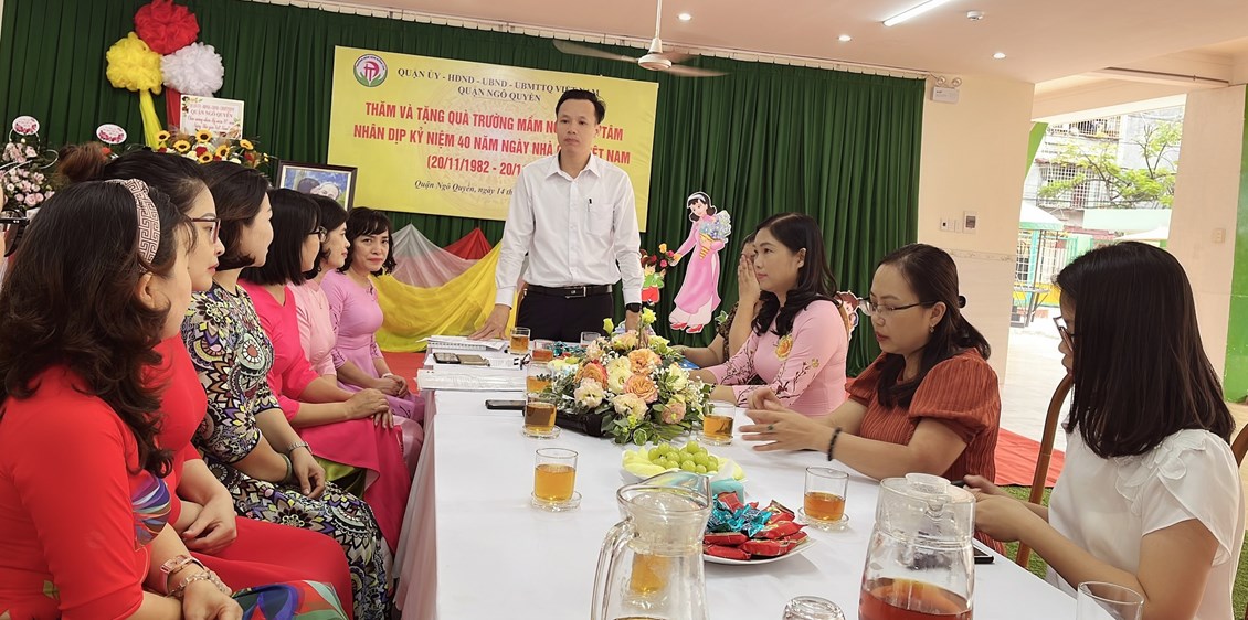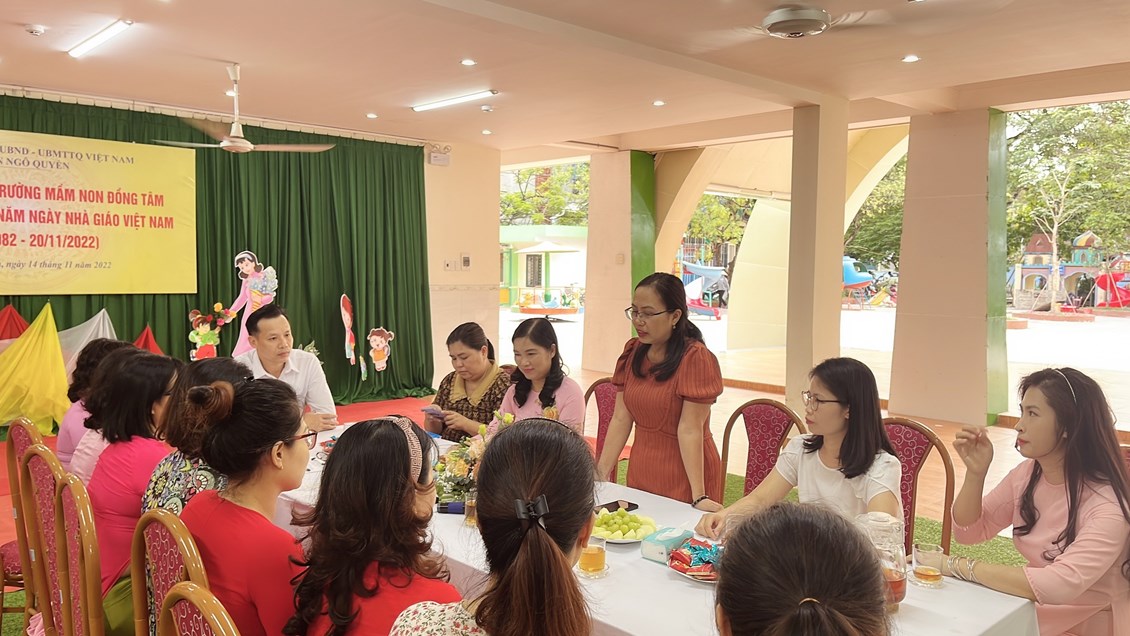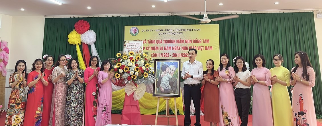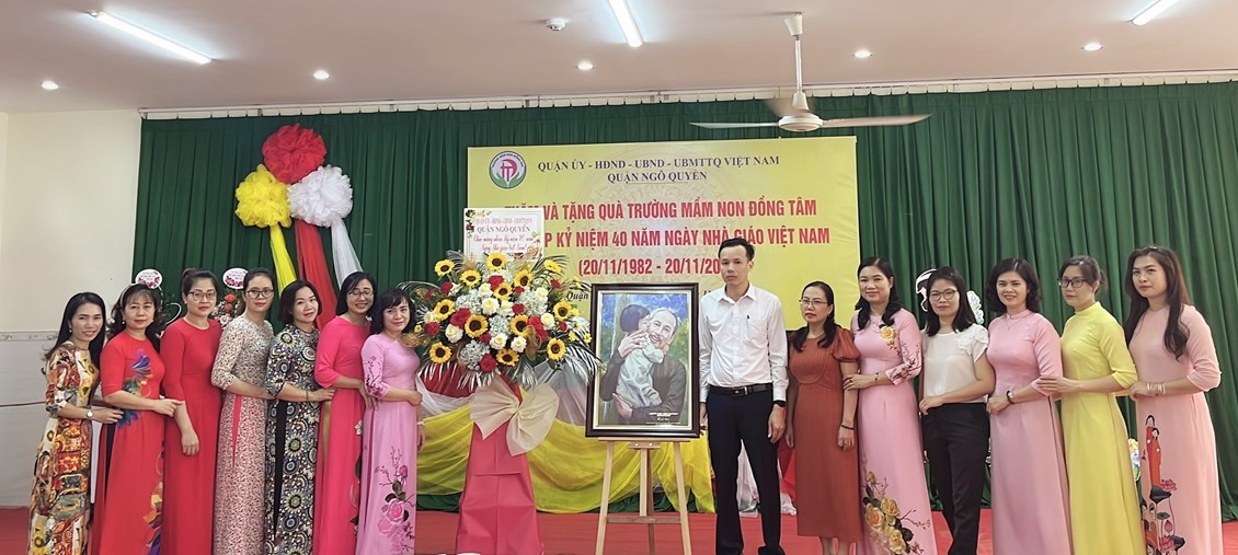 Phát biểu chúc mừng, đồng chí Phó Chủ tịch UBND quận đã gửi lời chúc mừng tốt đẹp nhất đến cô và trò Trường Mầm non Đồng Tâm nhân Ngày Nhà giáo Việt Nam 20/11; đồng thời đánh giá cao những nỗ lực của tập thể Nhà trường trong giáo dục, đào tạo để đạt được những thành tích đáng khen ngợi. Đồng chí Phó Chủ tịch quận nhấn mạnh: Quận luôn dành sự quan tâm, hỗ trợ và tạo mọi điều kiện cho ngành Giáo dục của quận; luôn quan tâm, động viên kịp thời các cô giáo và học sinh trên mọi phương diện. Đồng chí mong muốn Nhà trường cùng cán bộ, giáo viên, nhân viên nhà trường tiếp tục chú trọng nâng cao chất lượng chăm sóc giáo dục trẻ, mong muốn các cô luôn giữ vững ngọn lửa nhiệt huyết trong sự nghiệp trồng người, yêu nghề, mến trẻ...